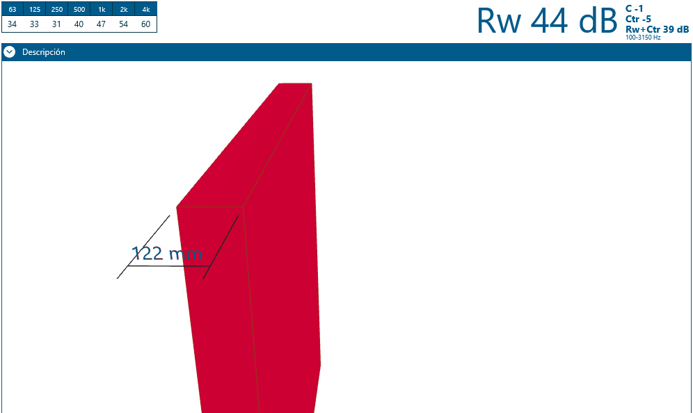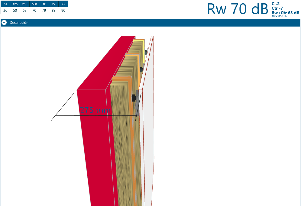 El cálculo proporcionará el aislamiento acústico de referencia de ese elemento constructivo.